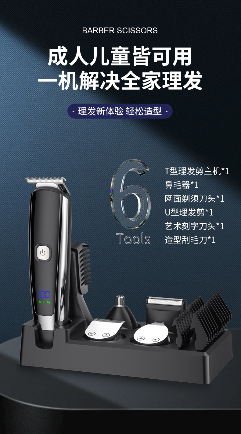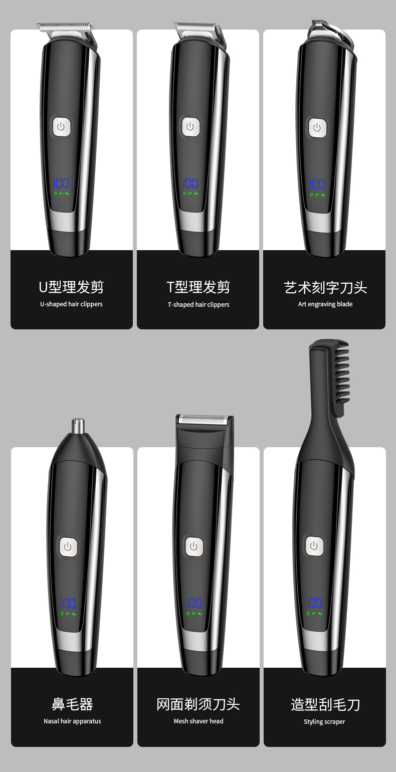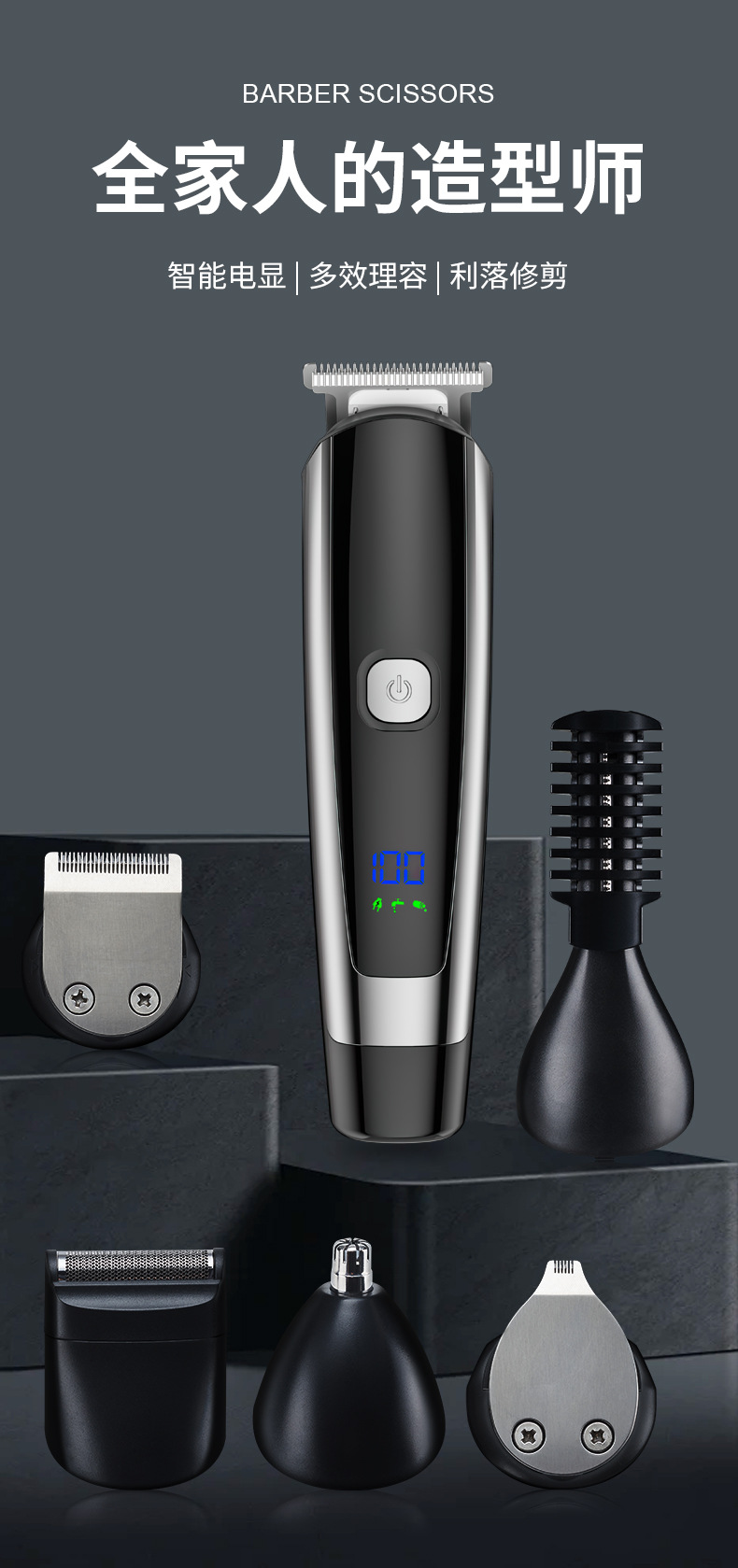 6-in-1 Electric Hair Clipper Set – Rechargeable Trimmer with Digital Display & Waterproof Design