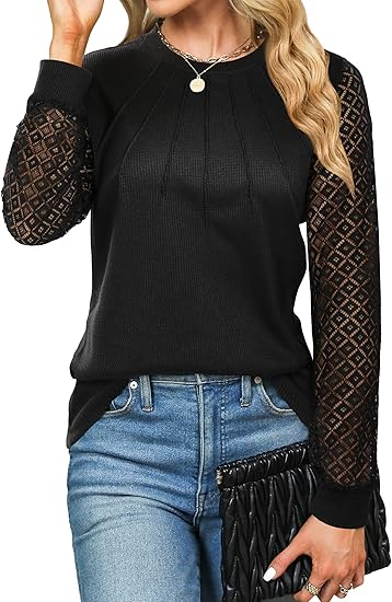 Stay cozy and stylish this season with our Women's Lace Trim Knitted Shirt, designed for effortless autumn layering. Crafted from soft and breathable cotton fabric, this long-sleeve top features a relaxed, loose fit that flatters all body types. The round neck adds a classic touch, while the elegant lace trim and lantern sleeves bring a romantic and feminine vibe to your casual wardrobe.