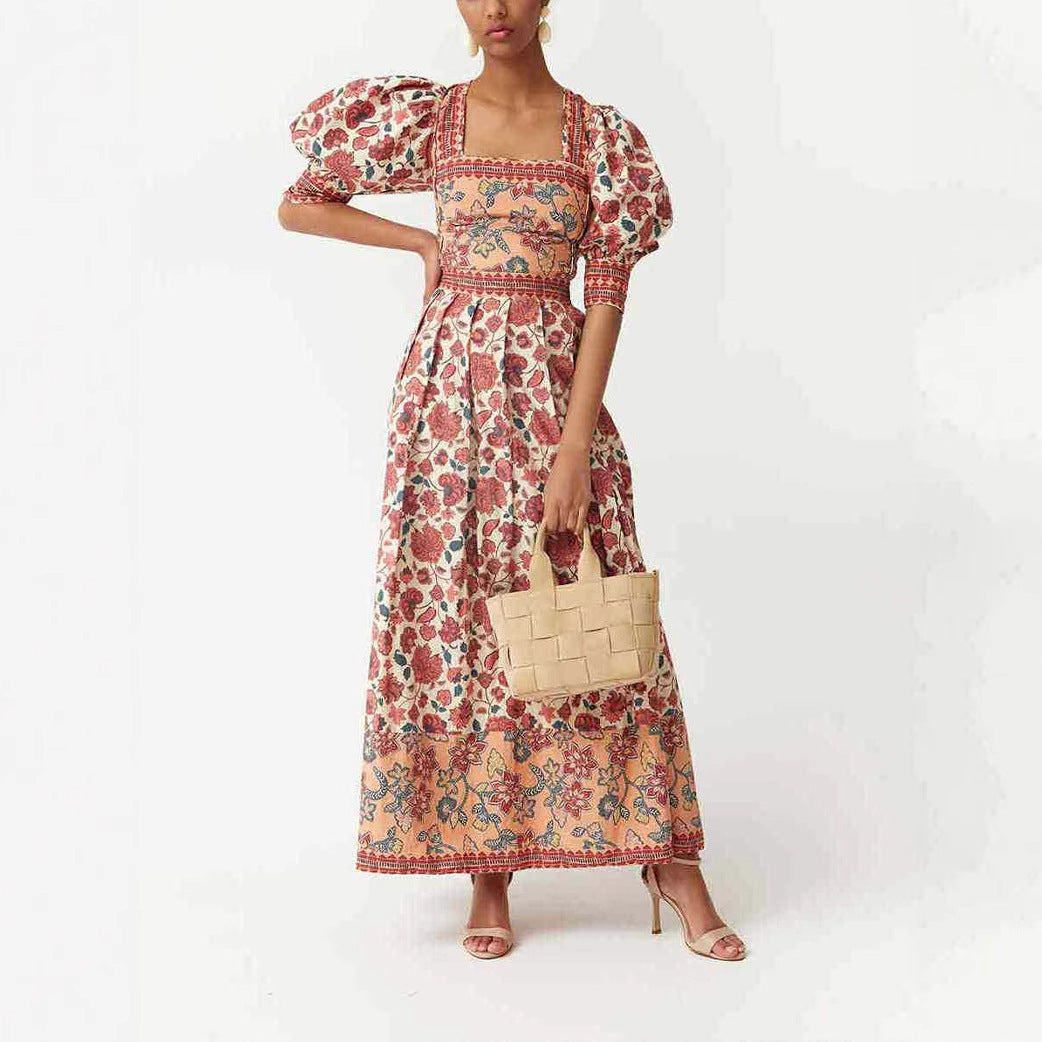 Casual Print Top Square Collar Skirt Two-piece Suit
