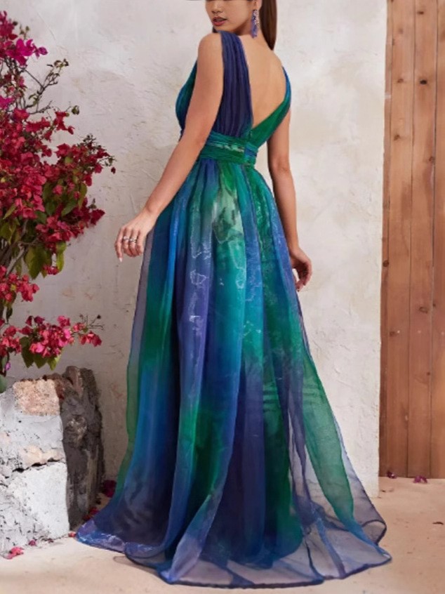 Women's Deep V-Neck Backless Chiffon Maxi Dress