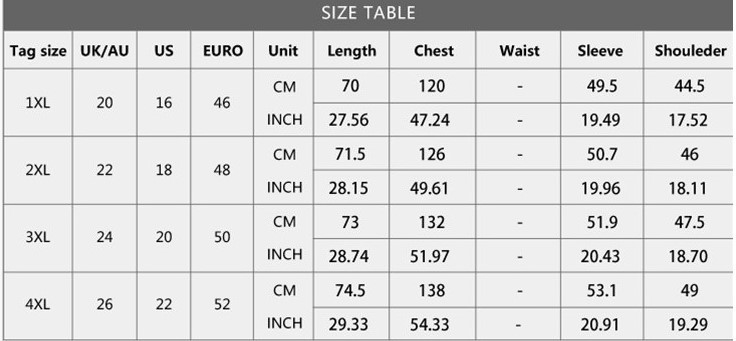Sizes Available: XL, XXL, XXXL, XXXXL, 5XL