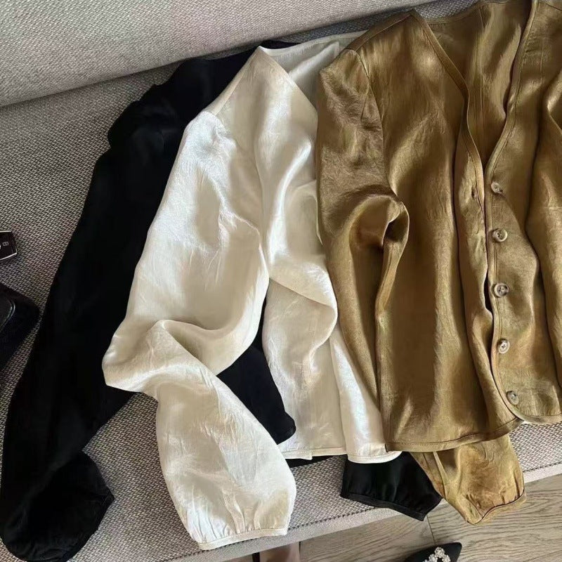 Ice-sensitive Acetate V-neck Long Sleeve Sunscreen Coat