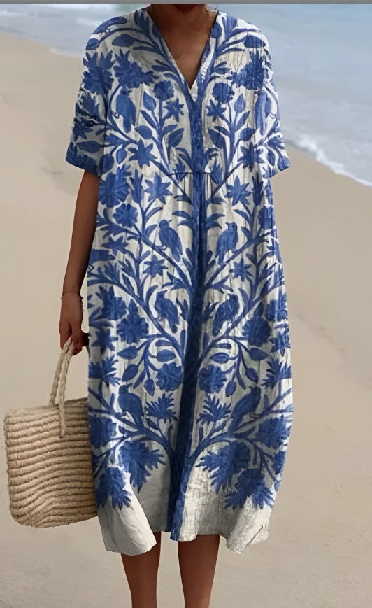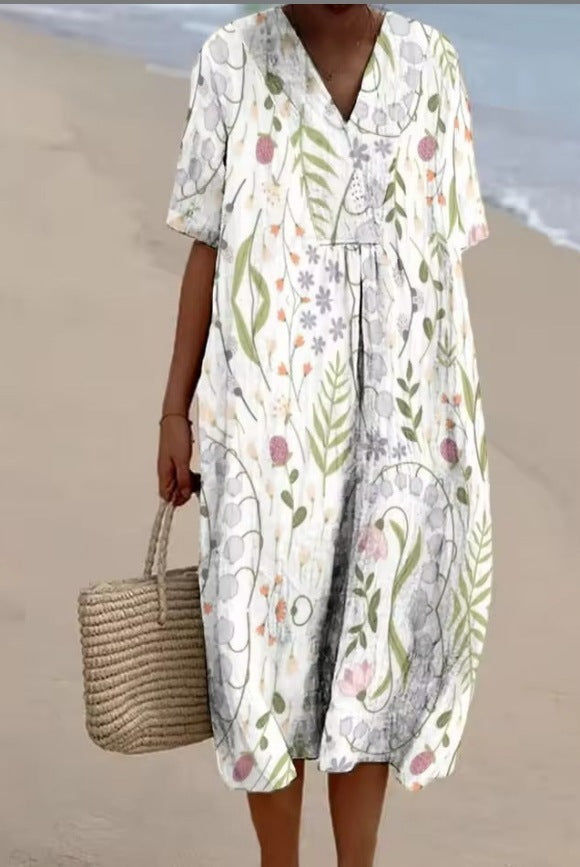 Plus Size Women’s 3D Print Shirt Dress – Casual Short Sleeve Tunic Dress