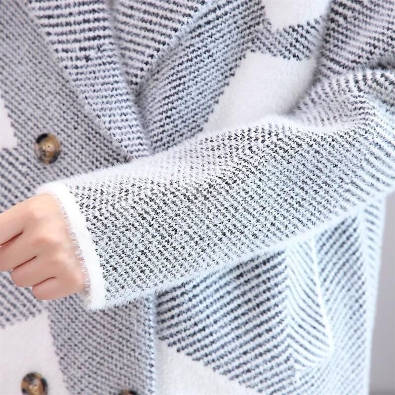 Women's Faux Mink Fur Knit Cardigan – Loose Fit, Thick & Warm, Flight Sleeves, Color Block Design