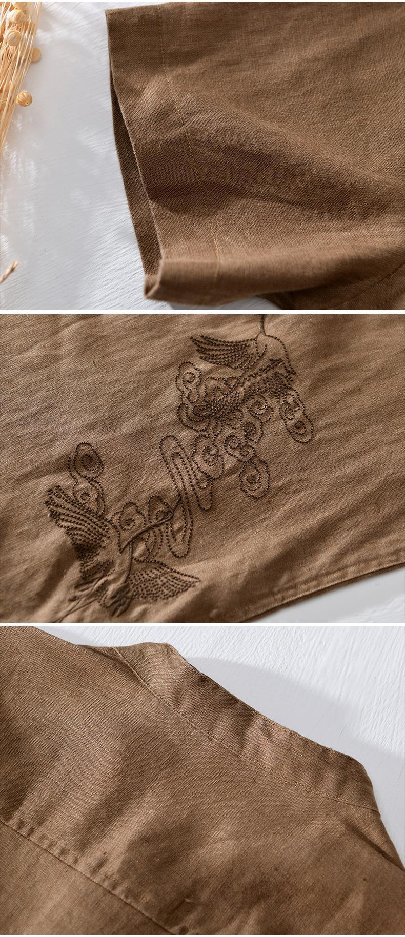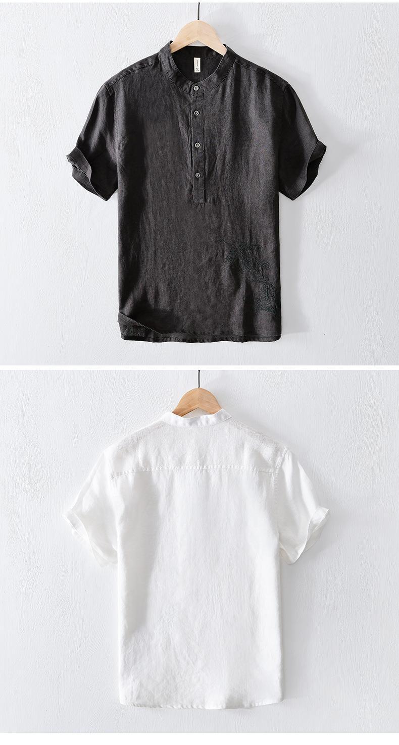 Men's Embroidered Linen Short Sleeve Shirt – National Style, Breathable & Loose Fit for Summer