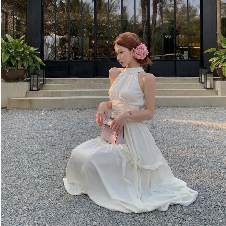 Retro Design Halter Spaghetti Straps Sleeveless Long Jumper Dress