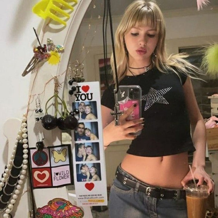 Women's Casual XINGX Rhinestone Printed Round Neck Short Sleeve