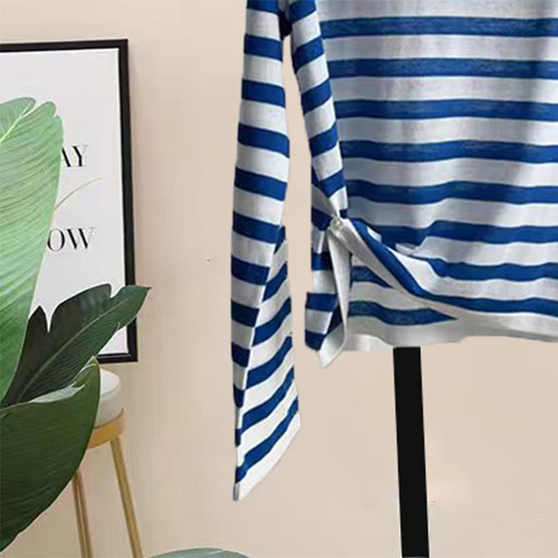 Women's Minimalist Striped Breathable Round Neck Long Sleeved Shirt