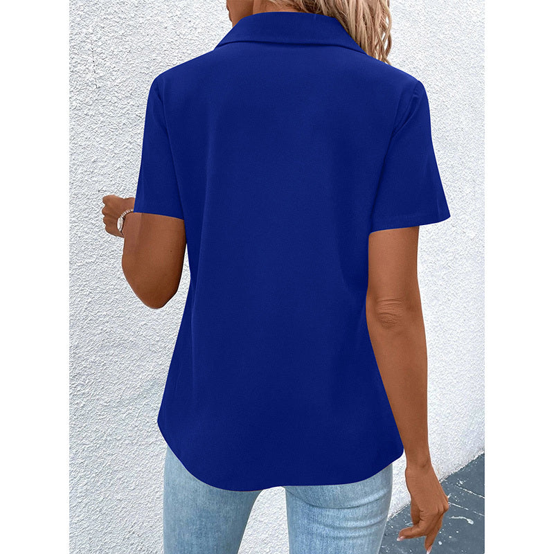 Women's Zipper Polo Shirt - Short Sleeve Summer Collared Top | Casual Loose Fit Blouse